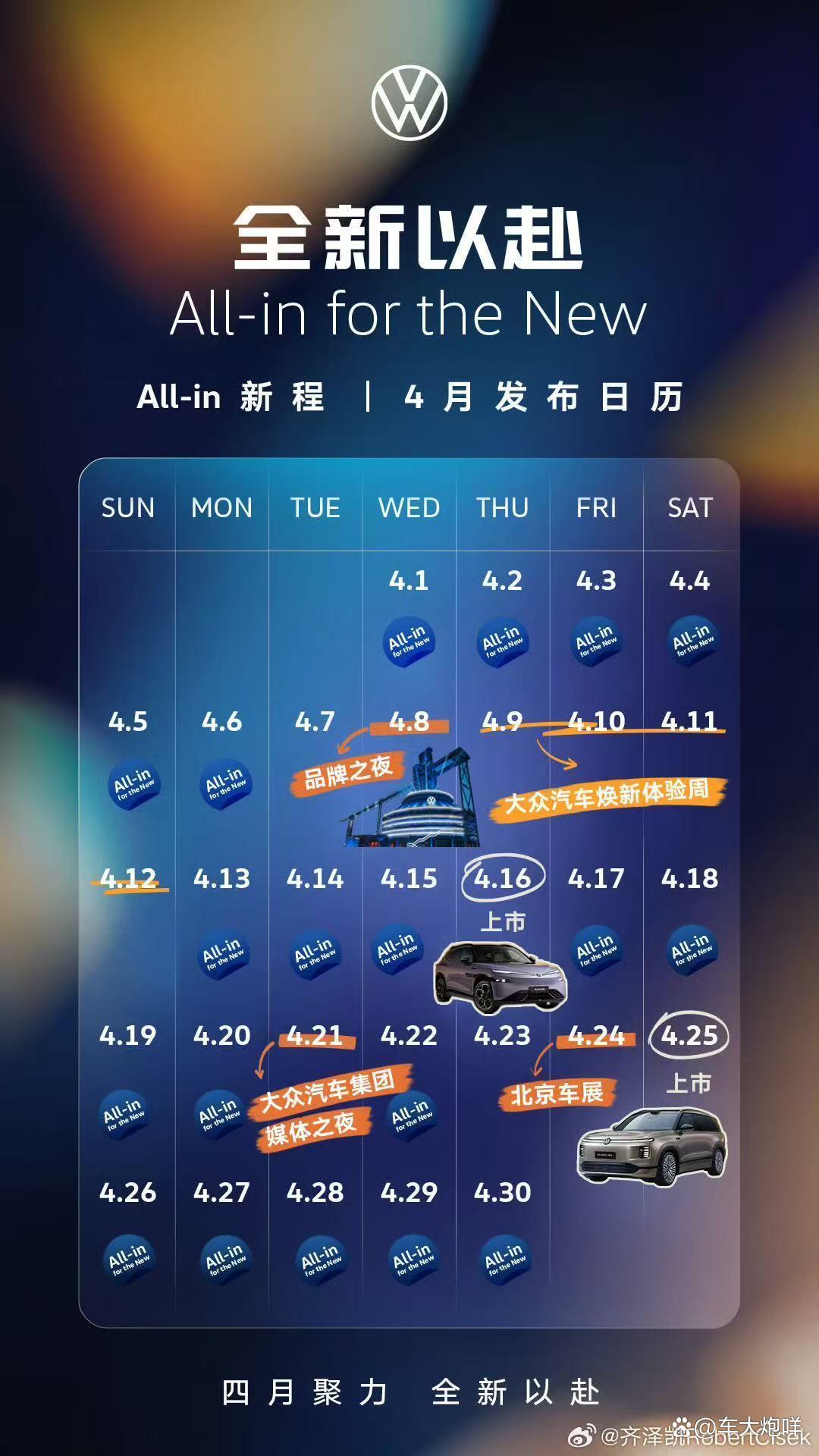 日前股市股票配资,大众汽车乘用车品牌中国CEO齐泽凯通过个人社交媒体账号发布了4月份大众新车的进度,其中大众与众08将于4月16日正式上市。作为大众与小鹏联合开发的首款车型,大众与众08已开启预售,预售价为23.99万-29.99万元。